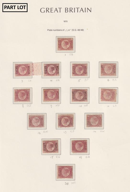 1870-9 ½d rose-red x all 20 plates (plate 9 gum remnants, no obvious cancel but counted in cv as used; plate 8 pulled perf;