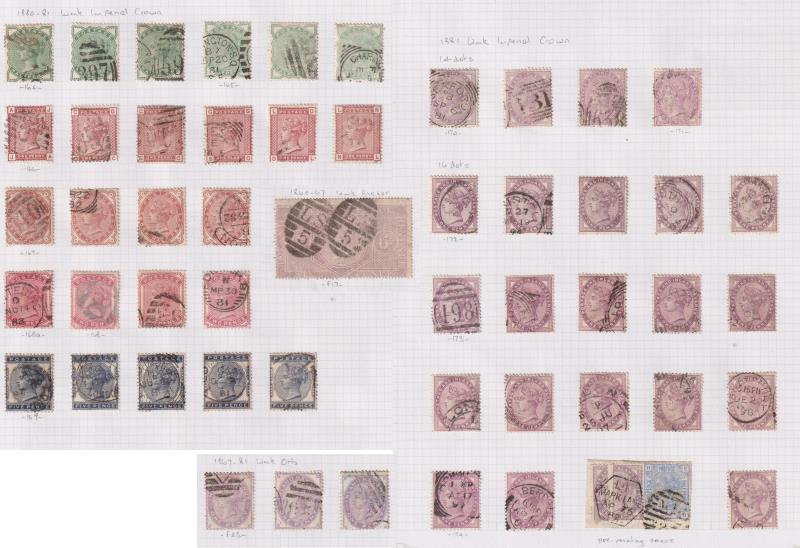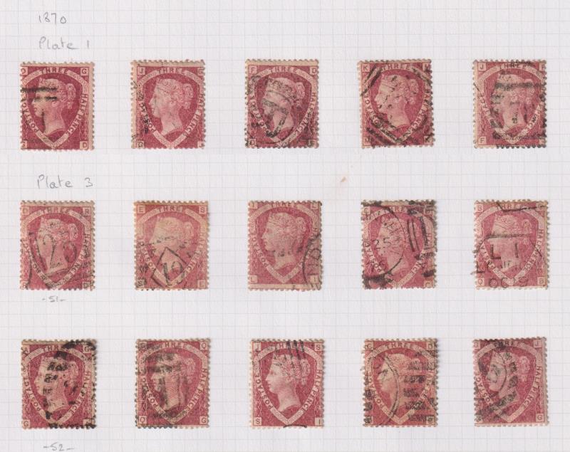1870-4 1½d rose-red used colln on page - plate 1 x 5, plate 3 x 10. Tidy lot. SG cat £1300. (Image)