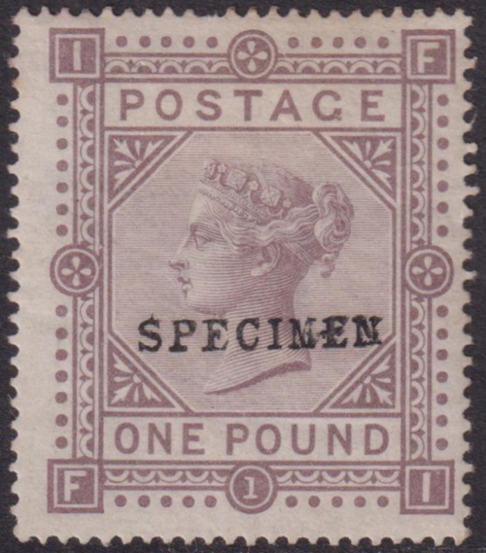 1878 £1 brown-lilac, "SPECIMEN" ovpt, (SG Type 9), MC wmk, short perf. SG Spec J126t. Cat £6000. OG. (Image)