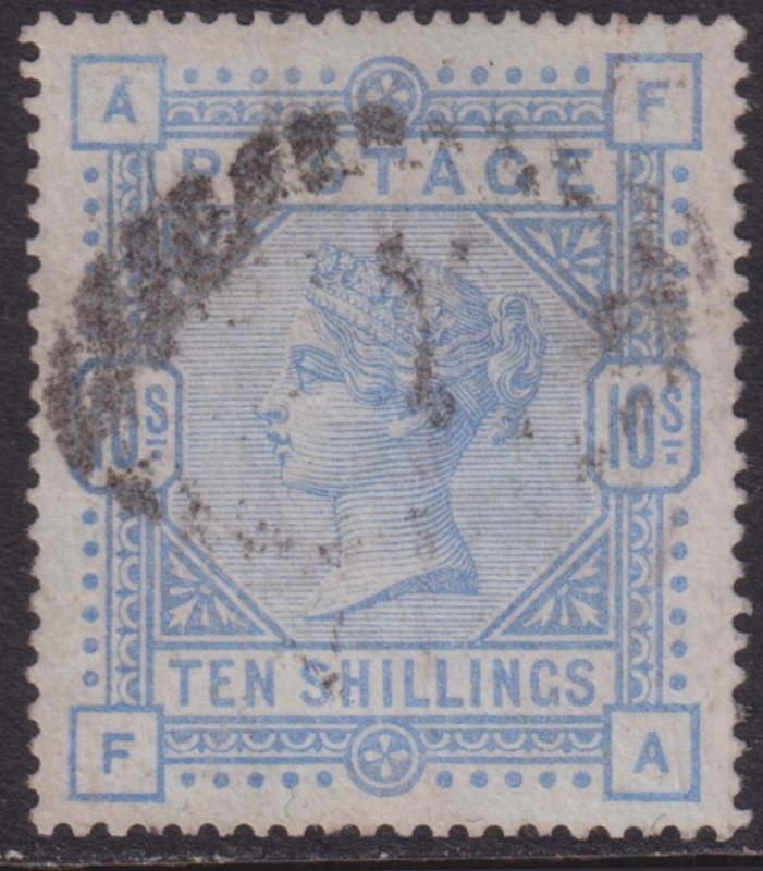 1884 10/- pale ultramarine, white paper. SG 183a. Cat £375. FU. (Image)