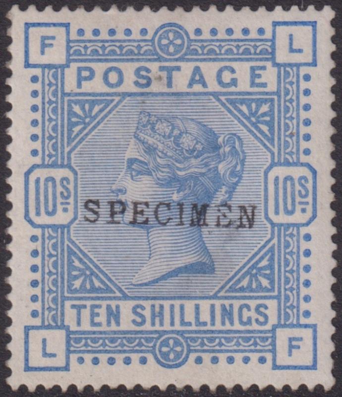 1884 10/- ultramarine, "SPECIMEN" ovpt (SG Type 9), white paper. SG Spec K14s. Cat from £550. (Image)