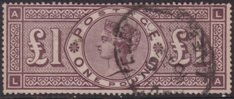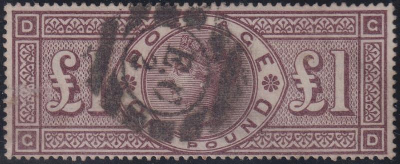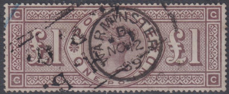 1888 £1 brown-lilac, wmk 3 orbs, tiny pinhole lower LH corner. SG 186. Cat £4500. GU/FU. (Image)