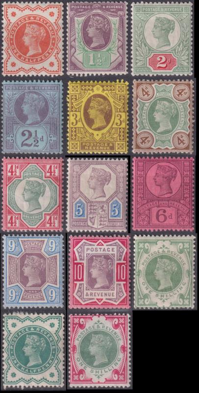 1887-1900 Jubilee set of 14v. SG cat £650. Mint. (Image)
