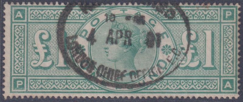 1891 £1 green. SG 212. Cat £675. FU. (Image)