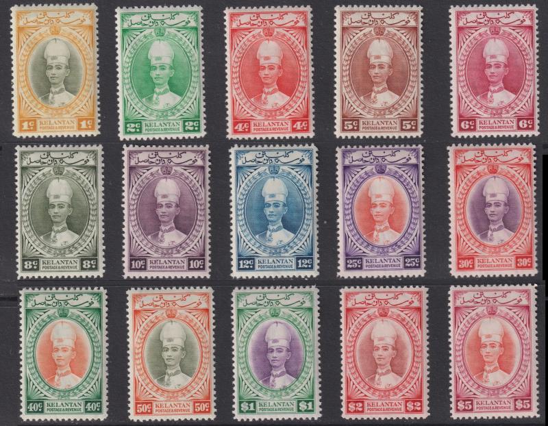 Malaya-Kelantan 1937-40 Sultan Ismail set of 15 to $5. SG 40-54. Cat £2000. Mint. (Image)