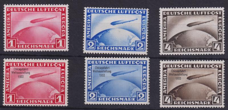 Germany 1928-33 1Mk-4Mk Air (airship "Graf Zeppelin" over globe)": a) 1928-31 set of 3 without ovpt mint, SG 443-5 (2MK slight