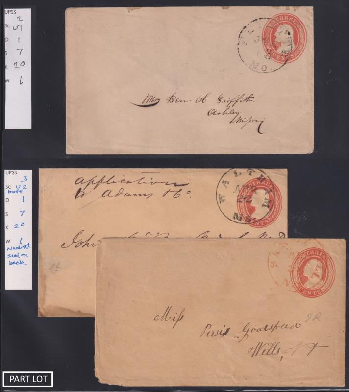 Over 1150 covers, some dupn. The 1st 270 envelopes to 1886 cat nearly US$10,000. Many good items. Plus bundle about 20 large Priority Mail envelopes & 19th & 20th century books by Dan Undersander. Weight 22kg. Mostly unused. (Image)