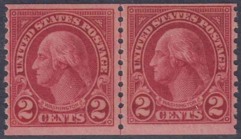 USA 1929 2c Washington carmine horiz coil joint line pair, type II, rotary press printing. PSE cert (2008). Scott 599A. Cat