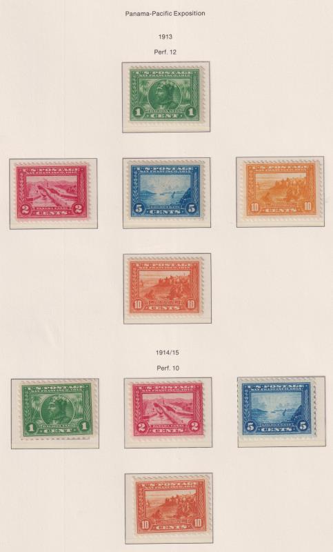 USA 1913 Panama-Pacific Expo p12 & p10 sets; 1c both & 2c p12 MUH, rest mint. 5c p10 PSE cert graded 95J (2010) & 10c PSE cert