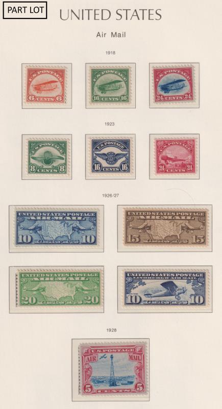 USA 1918-63 Airs complete except no 1930 Zeppelins set. Incl coil stamps as pairs. Scott C1-12, 16-68. Cat US$930+. MUH. (Image)