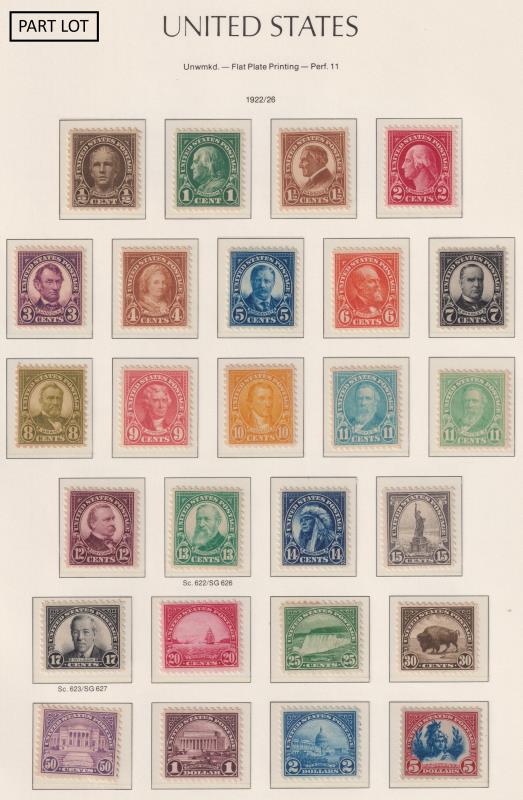 USA 1922-32 Presidents, Pictorials etc specialised colln on L/H hingeless pages - nearly all spaces filled, flat plate & rotary
