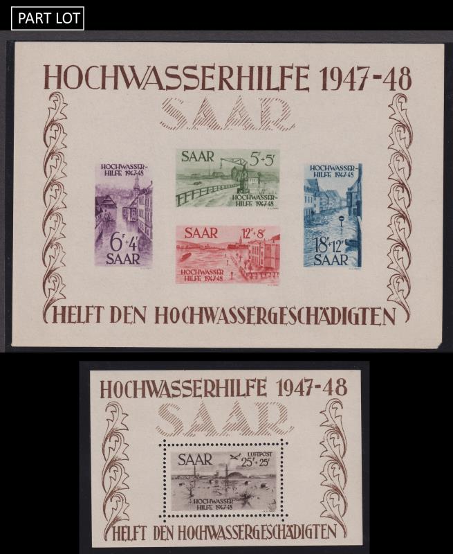 103 / imageGermany c1880s-1970s collns in 4 albums & bundle, mix mint/MUH & used. Incl all eras: Empire, Third Reich, allied occupations, West, East & some Luxembourg (German occup) & Saar. Noted: East & West Germany some key early commems, many West Germany MUH blocks of 4; 3rd Reich mostly complete; Saar 1948 Flood Relief Fund m/ss (2) MUH (imperf sheet 1 corner slightly short). Several thousands. Good cv. (Image)