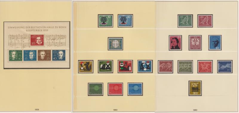 105 M* imageGermany-West 1949-79 apparently complete simplified mint (MUH from about mid 1950s) colln in 2 L/H hingeless albums with slipcases, incl all the early commems. High cv. (Image)