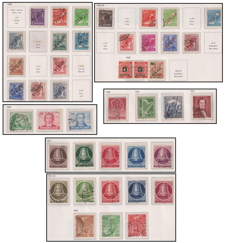 107 U imageGermany-West Berlin 1948-90 seln of FU in hingeless Davo album. Noted 1948 50pf & 80pf Allied Occup stamps with black BERLIN ovpts, 1949 Goethe set of 3, 1950 Philharmonic Orchestra set of 2 & the 3 Freedom Bell sets of 5 (1951 clapper at left, 1951-2 clapper at right & 1953 clapper in centre), all FU. SG cat £1870+. (Image)