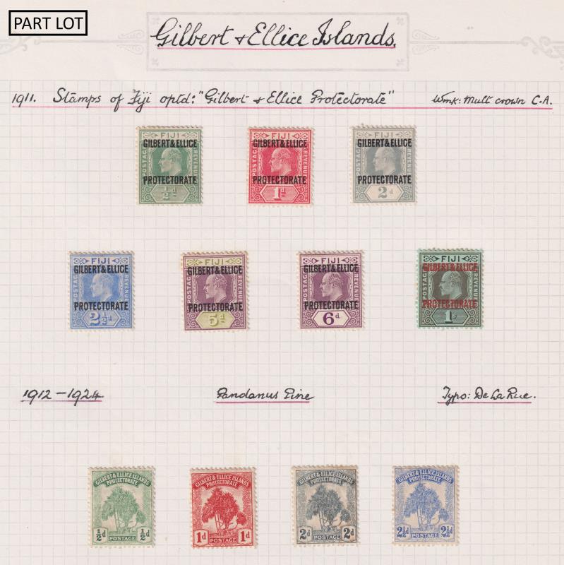 110 / imageGilbert & Ellice Isl/Kiribati 1911-75 virtually complete mint colln on pages, incl Postage Dues, £1 GV only item apparently missing. Also good FU seln 1935 SJ set, 1949 Wedding set, 1939 & 1956 Picts sets etc. Then Kiribati apparently complete from 1979-89 mint & used. Then c1990-c2016 in packets. Also Norfolk 1947-82 & Cocos 1963-88 mint & used colln appears complete. Good cv. (Image)