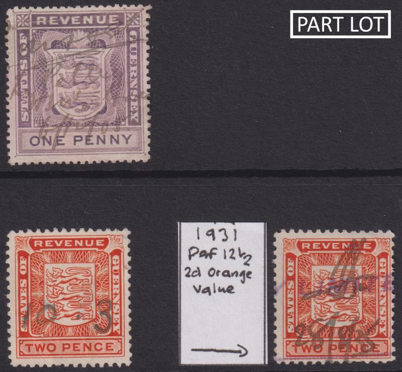 111 R imageGuernsey c1900s-40s Revenues colln/accum on annotated pages - about 35 stamps & 32 documents. Untidy presentation but interesting lot. (Image)