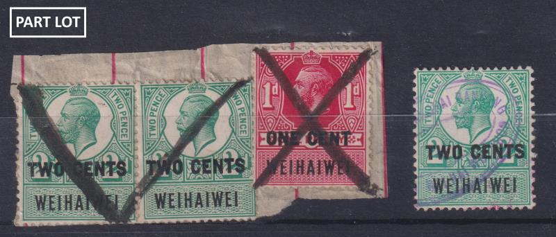 113 R imageHong Kong (& Wei Hai Wei) 1885-c1990 seln of revenues on/off piece with dupn. Also 4 Wei Hai Wei (3 on piece). Barefoot cat £2450+. (Image)