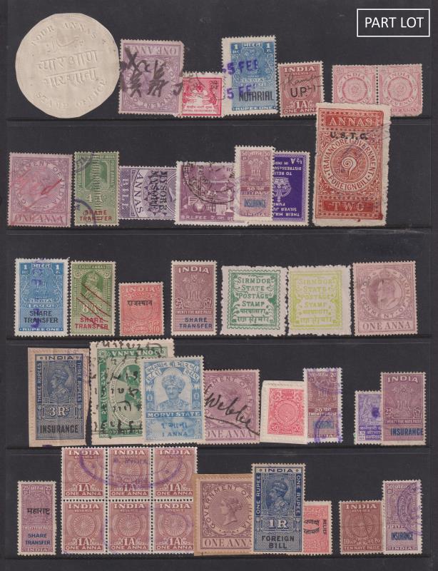 117 R imageIndia & States c1870-c1950 colln of misc revenues housed in Hagners & also on stockcards as 4 discrete units (India 1, States 3), various singles/multiples & documents (341v & 1564v + 185 documents, respectively). (Image)
