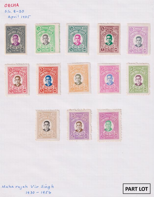118 / imageIndian States c1880s-1940s mint & used colln in 6 albums/s/bs incl some state revenue stamps & Pakistan/Bahawalpur. Noted Bijawar 1937 set of 5 mint; Charkari 1921 1a violet imperf mint; Orchha 1935 set of 22 mint & 1939 short set to 5r mint (minor tone spots on rupee values); Patiala 1884 1a GU; Soruth 1929 set of 8 mint; & Bahawalpur 1945 officials (SG O1-O3, O5-O6 & O14-O16) FU. Cat £3750+. (Image)