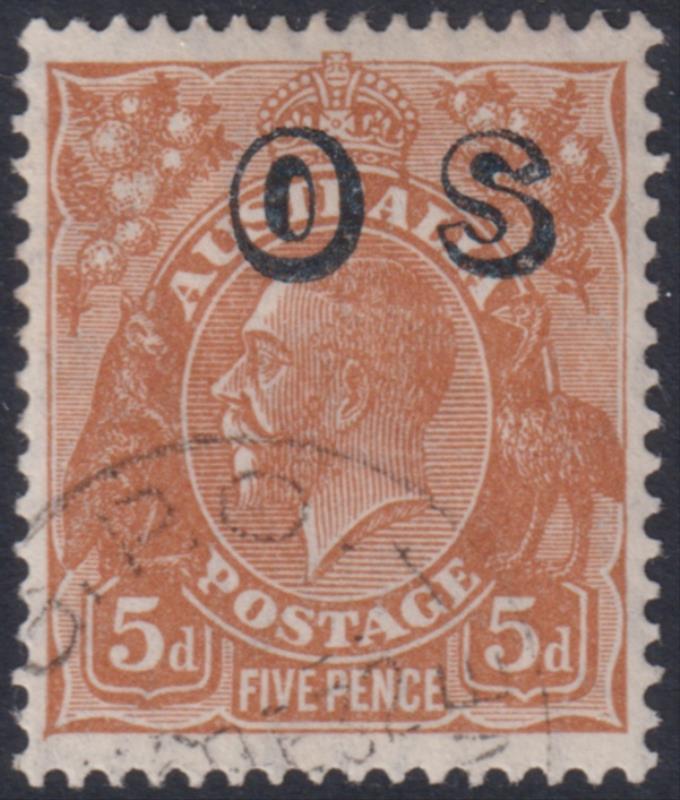 1932 5d GV, OS ovpt. SG O132. Cat £27. FU. (Image)