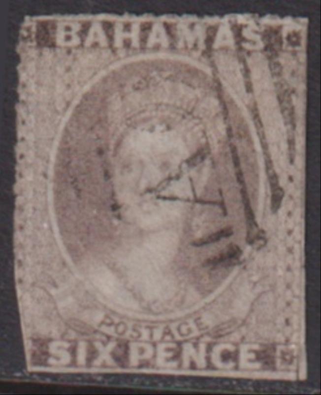 Bahamas 1861 6d QV pale grey-lilac, p14-16, trimmed two sides. SG 6. Cat £500. (Image)