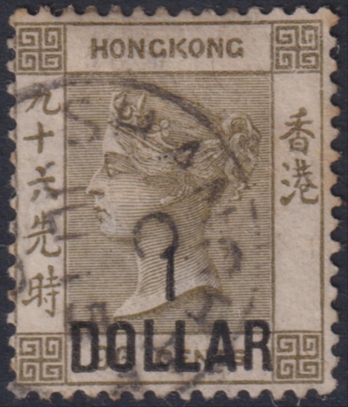 British Post Offices in China-Shanghai 1885 $1 on 96c QV grey-olive, cds. SG Z805. Cat £130. FU. (Image)