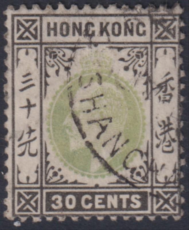 British Post Offices in China-Shanghai 1903 30c EVII dull green & black, crown CA wmk. SG Z828. Cat £45. FU. (Image)