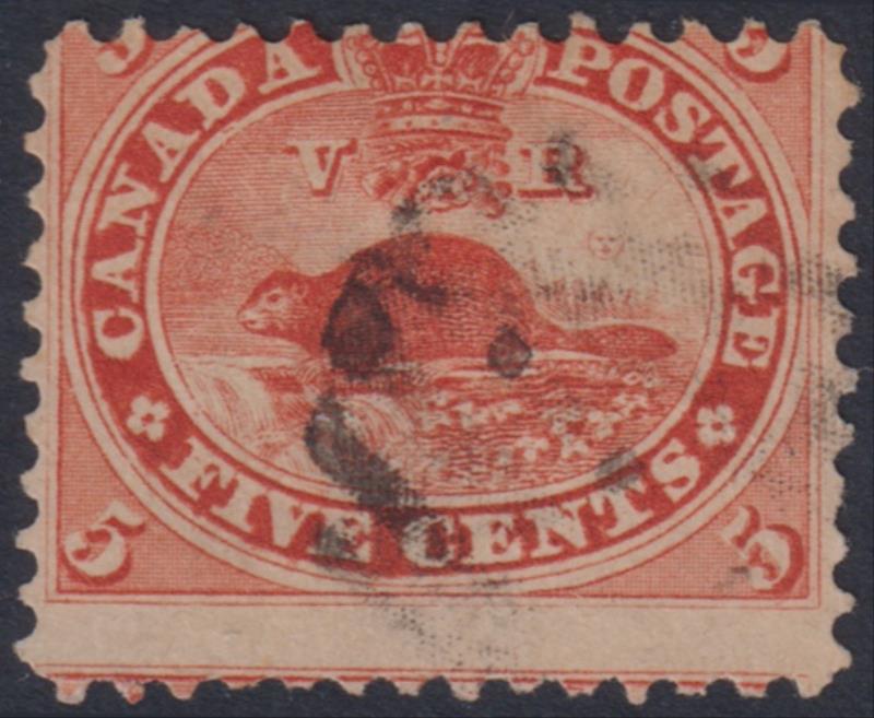 Canada 1859 3c Beaver pale red, p12, o/c. SG 31. Cat £25. GU/FU. (Image)