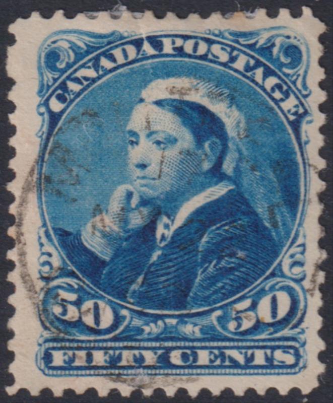 Canada 1893 50c QV blue, light cds. SG 116. Cat £60. FU. (Image)