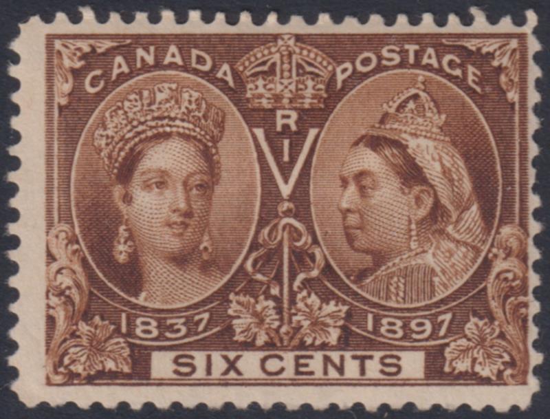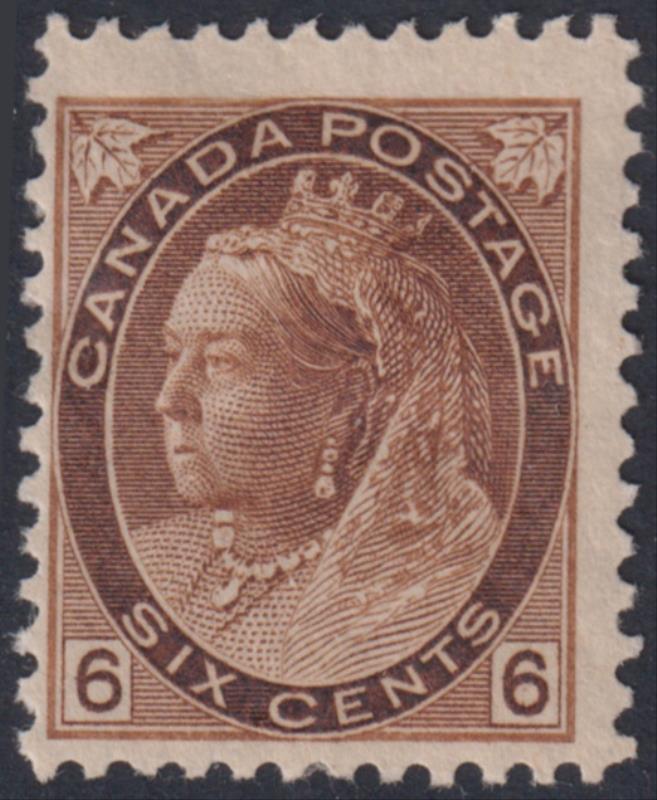 Canada 1897 6c Jubilee brown, o/c to right. SG 129. Cat £140. Mint. (Image)