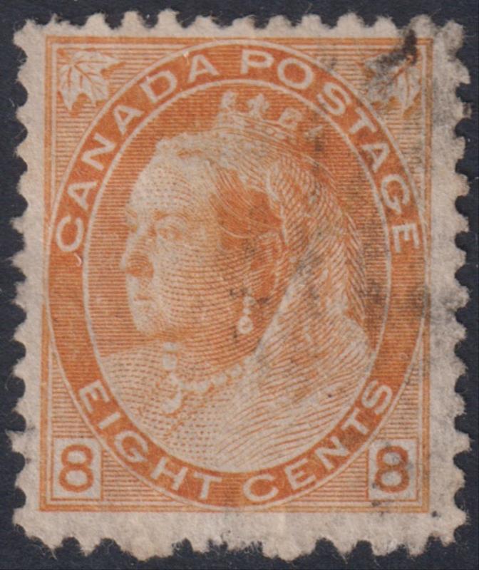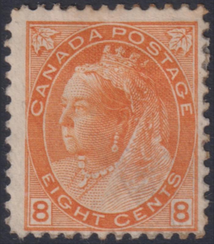 Canada 1898 8c QV orange-yellow, 2 Maple Leaves, centred low, part OG. SG 161. Cat £130. Mint. (Image)