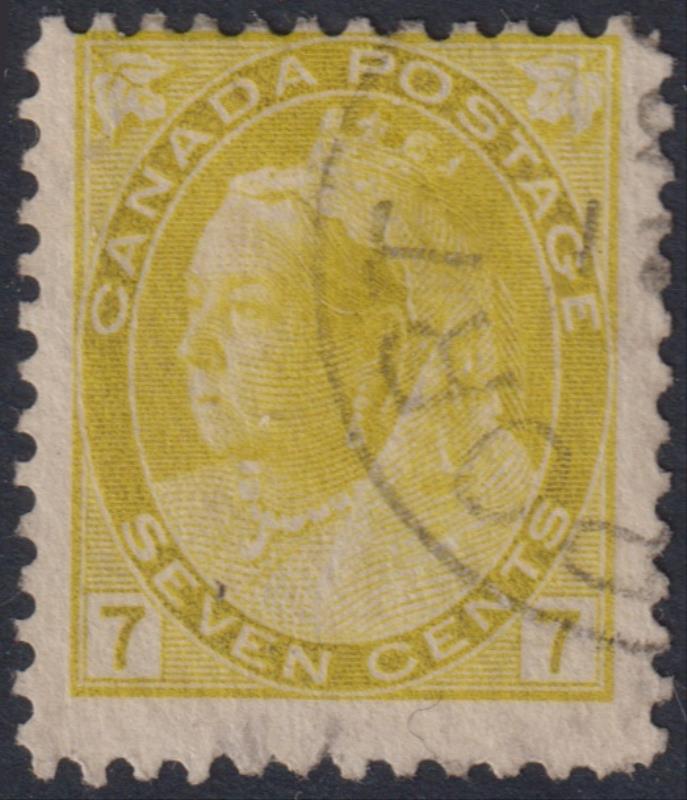 Canada 1902 7c QV 2 Maple Leaves greenish-yellow, crisp light cds. SG 160. Cat £32. FU. (Image)