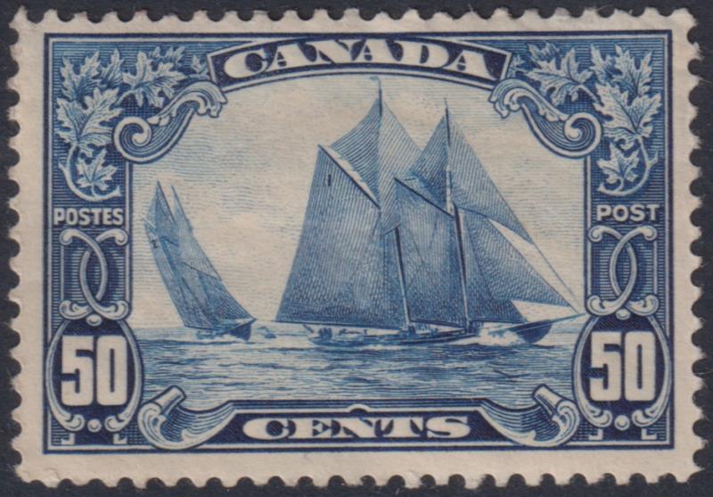 Canada 1929 50c Bluenose blue, fine looking but small thin (c.5 x 2mm). SG 284. Cat £190. Mint. (Image)