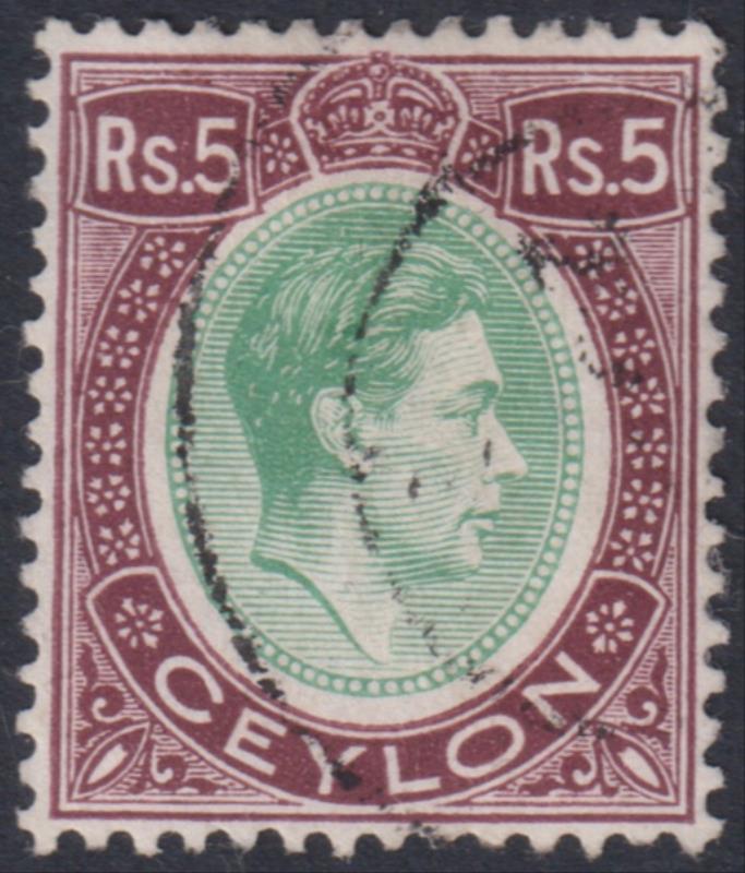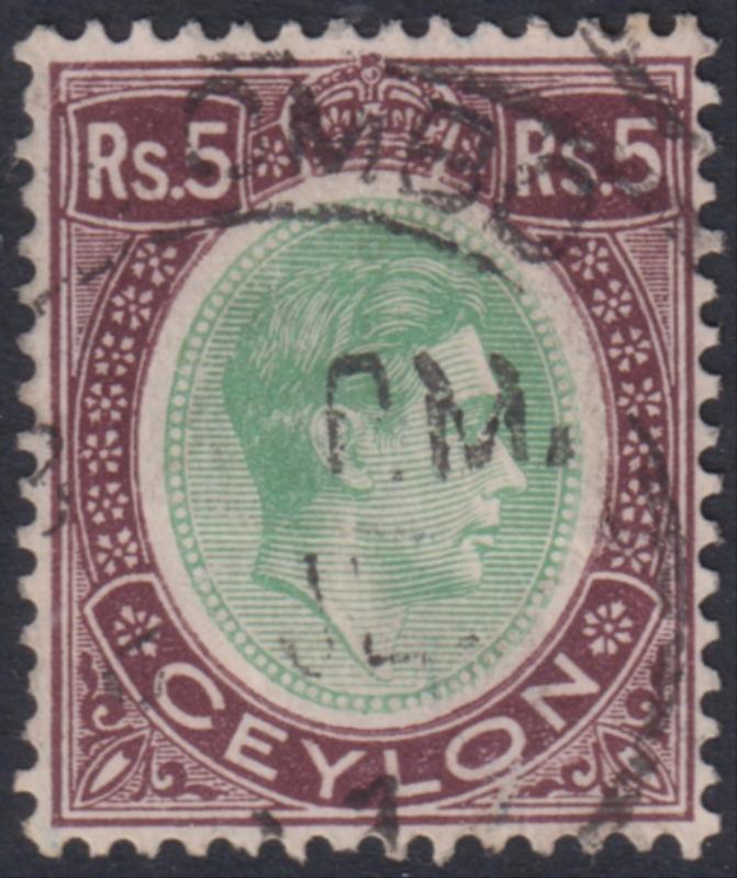 Ceylon 1938 5R GVI. SG 397. Cat £24. FU. (Image)