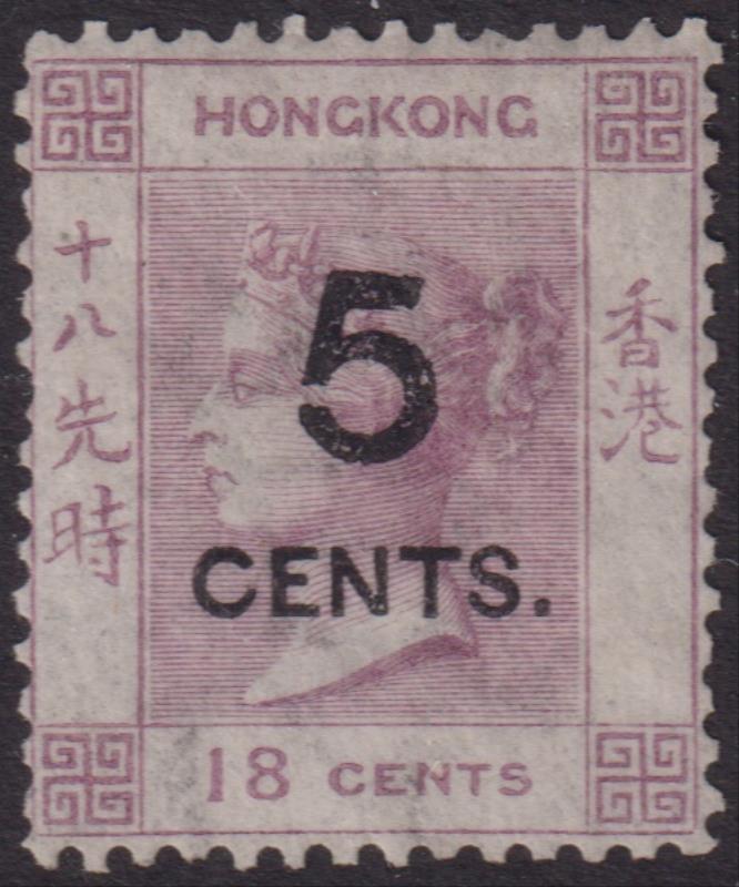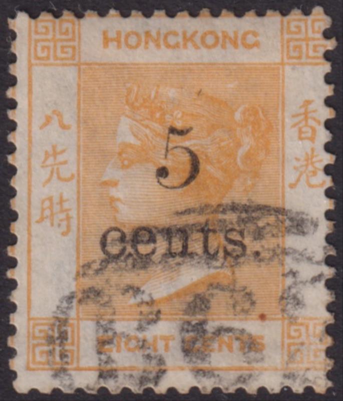 Hong Kong 1880 5c on 8c QV bright orange, B62 cancel. SG 23. Cat £120. GU. (Image)