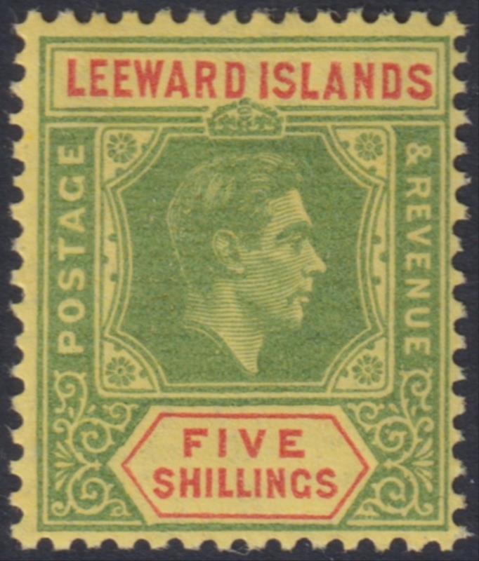 Leeward Isl 1938 5/- GVI. SG 112b. Cat £35. Mint. (Image)