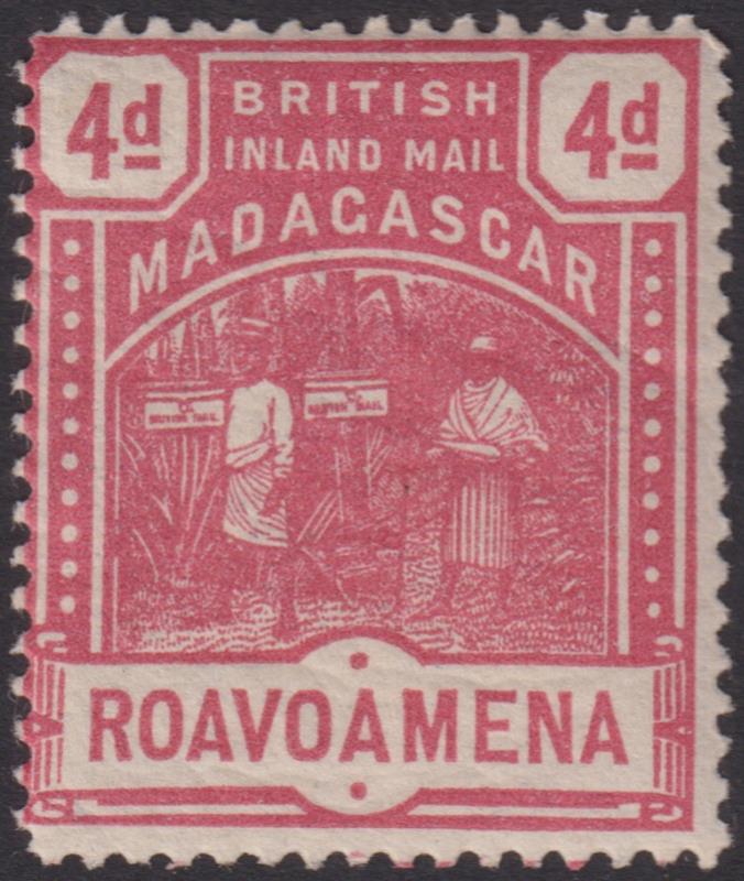 Madagascar 1895 4d rose "ROAVOAMENA". SG 58. Mint. (Image)