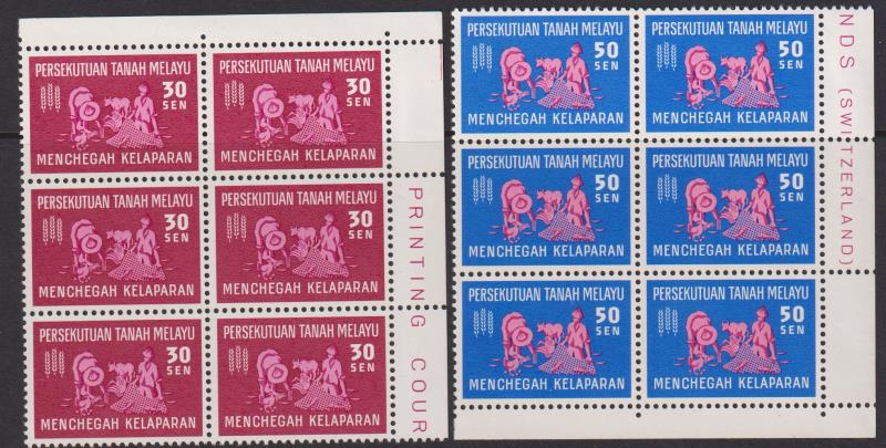 Malaya-Federated States 1963 30c & 50c Freedom from Hunger blks of 6. SG 33-4. Cat £43. MUH. (Image)