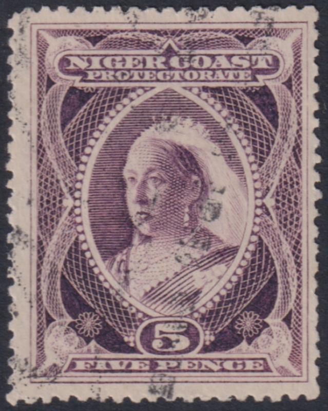 Niger Coast 1898 5d QV purple, p14½-15. SG 70c. Cat £250. FU. (Image)