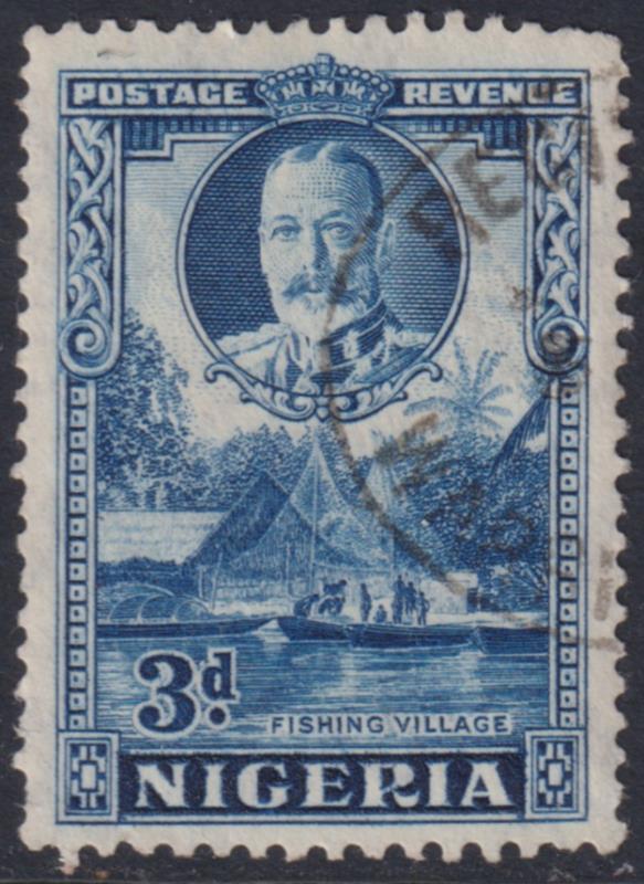 Nigeria 1936 3d GV & Fishing Village blue, p12½ x 13½. SG 38a. Cat £32. FU. (Image)