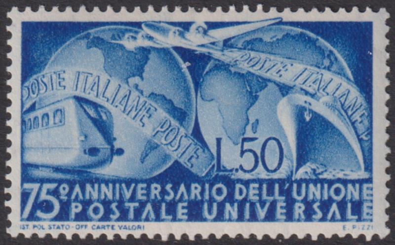 3164 M imageItaly 1949 50L UPU 75th Anniv. SG 725. Cat £120. Mint. (Image)