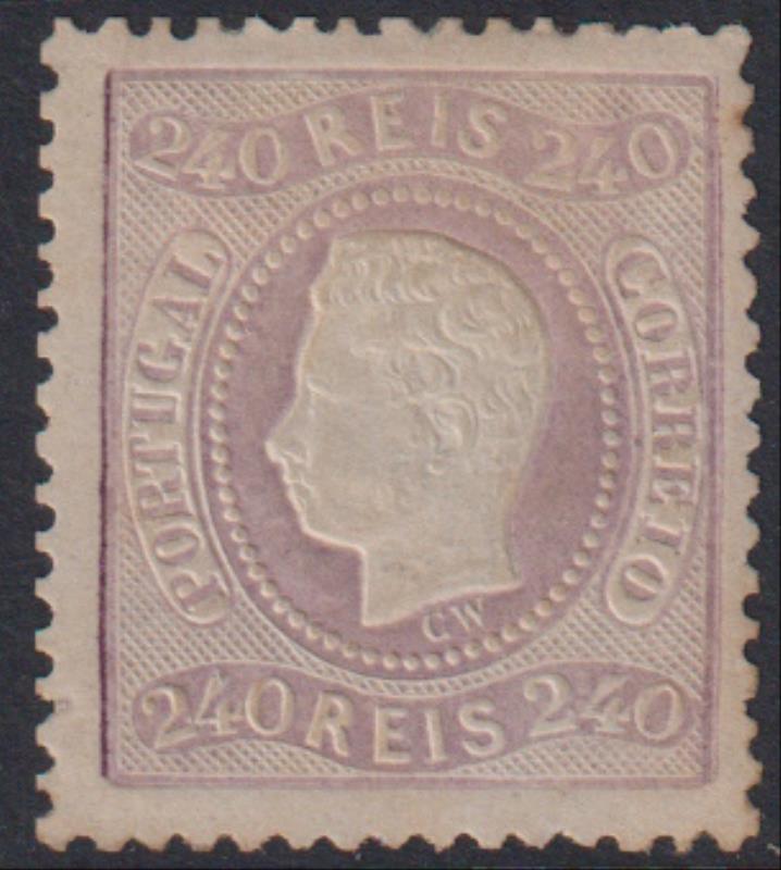 3216 M imagePortugal 1873 240r Luis pale dull lilac, straight value panels, p12½, unsurfaced paper. O/c, otherwise very fine. SG 99. Cat £2500. VLH mint. (Image)