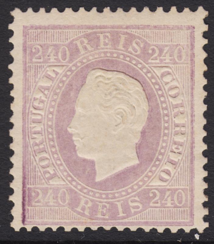 3215 M imagePortugal 1870 240r Luis pale dull lilac, curved value panels, p12½. SG 67. Cat £1600. Mint. (Image)