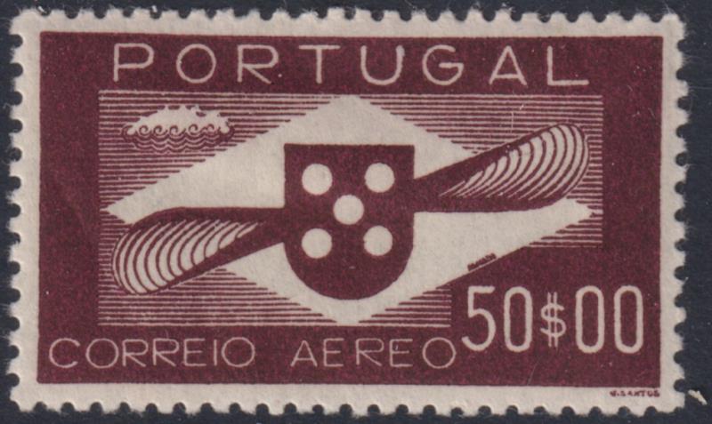 3221 M imagePortugal 1941 50E Airmail deep brown (stylised aircraft engine & propeller). Top value. SG 896a. Cat £275. HH mint. (Image)
