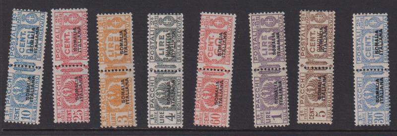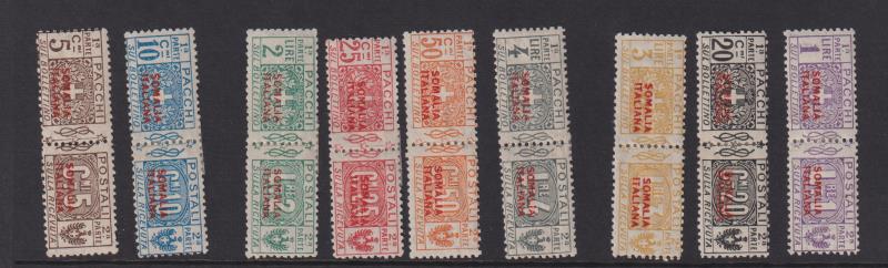 3234 M* imageSomalia 1928 5c, 10c, 25c, 30c, 60c, 1L, 3,L & 4L Parcel Post setenant pairs. SG P111 etc. Cat £150+. Mint/MUH. (Image)