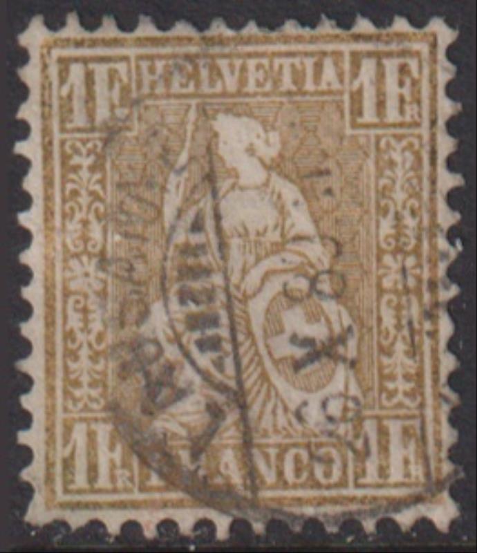 3240 U imageSwitzerland 1863 1f Seated Helvetia bronze-gold. SG 60. Cat £550. GU/FU. (Image)