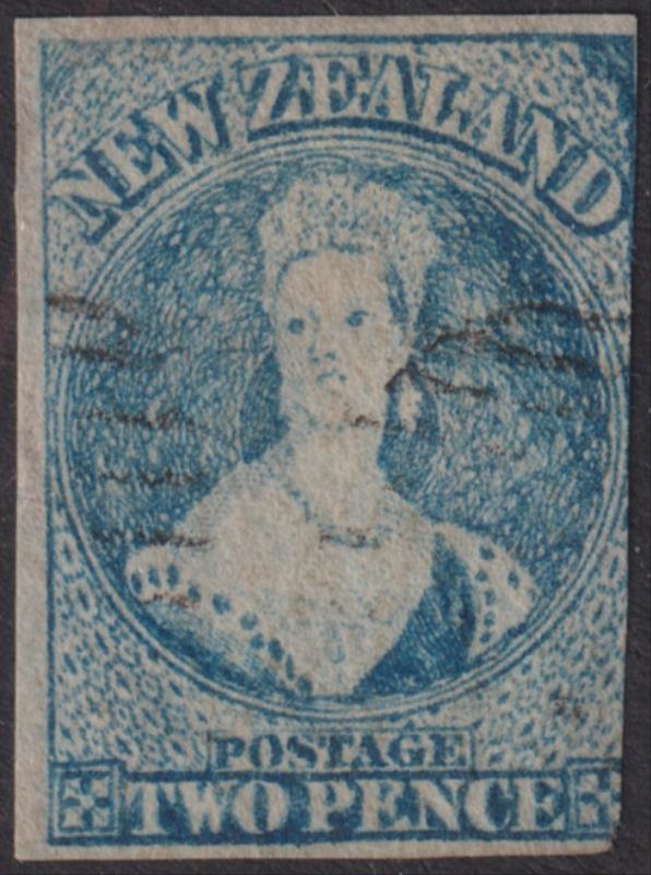 FFQ 2d blue (worn plate I), imperf 3 margins, star wmk, light barred cancel. SG 39. Cat £110. FU. (Image)