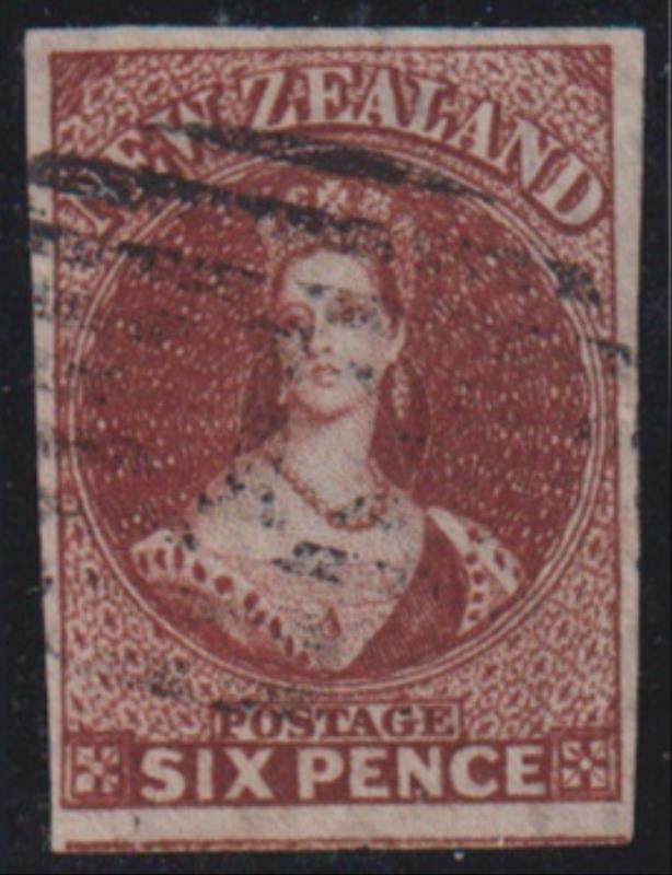 FFQ 6d red-brown, imperf 4 margins (just good), star wmk. SG 43. Cat £180. FU. (Image)