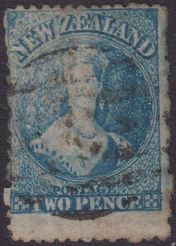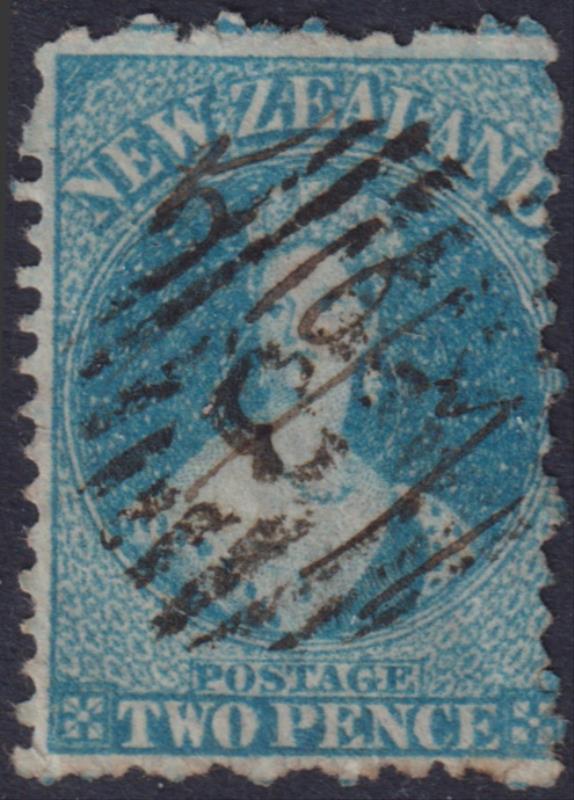 FFQ 2d blue (plate 2), p12½, star wmk, canc good Perkins Bacon "3" barred obliterator of Wanganui (over unidentified postal m/s