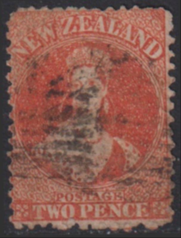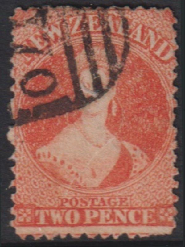 FFQ 2d vermilion, p12½, NZ wmk, w/c, "O70" barred cancel on face. SG 141. Cat £500. GU. (Image)